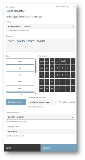 We've added a handful of useful non-mineral indices to the Rapid Mapping Outputs tool to get started, including: