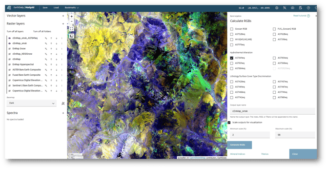 The Rapid Mapping Outputs tool is the top spot to find EarthDaily's curated list of mineral indices, RGB band visualizations, and Ternary Ratio (TRatio) combinations that are specifically selected for mineral exploration. In this update, we have added a new section for non-mineral indices and expanded the tool to function with hyperspectral datasets in addition to multispectral. Ultimately, this tool will replace the original Mineral Indices and Hyperspectral Mineral Index Analogs tools, so please make it your new favorite stop on your processing workflow.