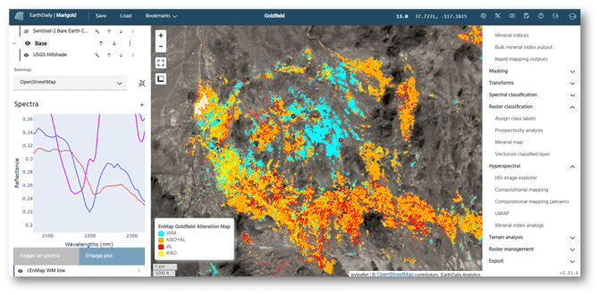 Hyperspectral imagery can be overwhelming and we want to make that easier. In 2025 we released the first iteration of our advanced mineral and compositional mapping tool with capabilities for mapping White Mica abundance and composition. In this update, we expand the Compositional Mapping tool to include additional minerals that are key to hydrothermal mineral systems, including chlorite (abundance, MgO composition, FeO composition, and MgO/FeO ratio), alunite (abundance and composition), kaolinite (abundance), and carbonate (abundance).